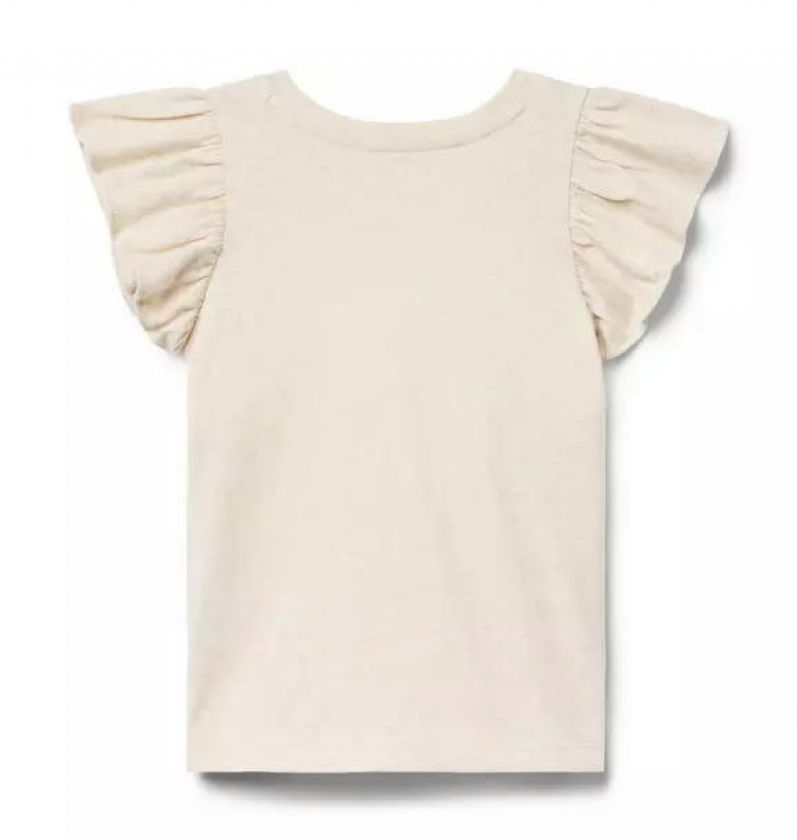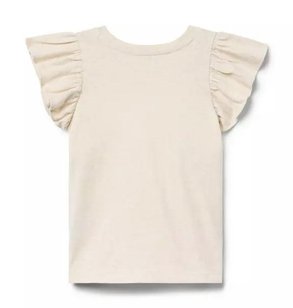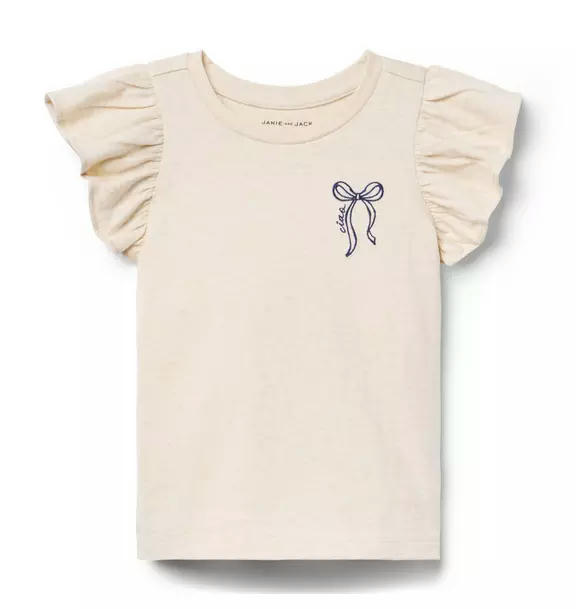 A wear-with-everything top with an Italian-inspired twist. In soft cotton jersey with ruffle sleeves and an embroidered bow detail.