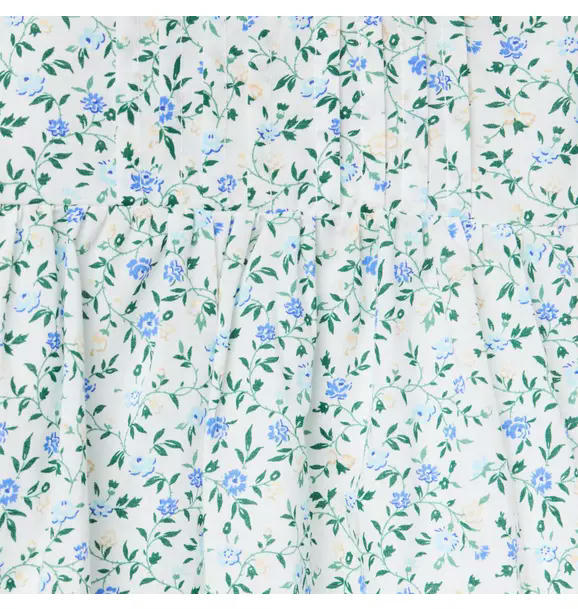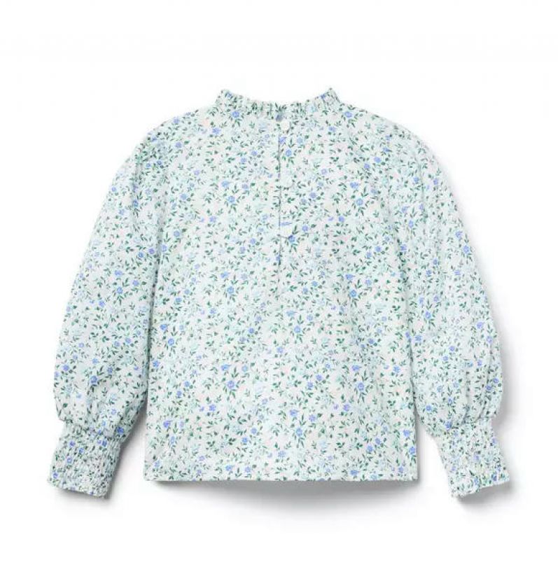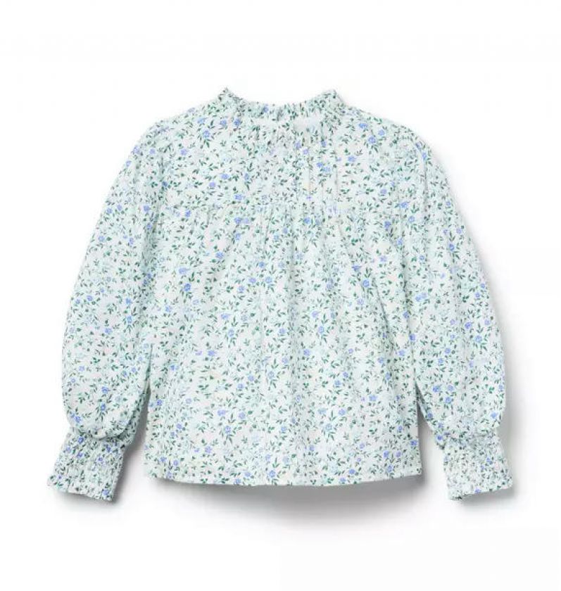 Ditsy florals and delicate pintuck details make this pure cotton top extra special. Stitched with love with smocked cuffs and a ruffle collar.