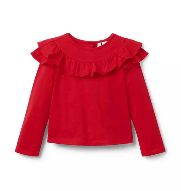 A wardrobe favorite for getaways or any day. Our top in pure cotton jersey features ruffle details for extra frills.