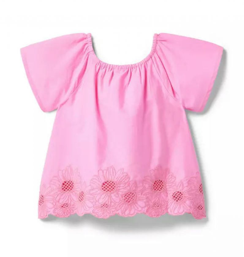 Embroidered florals make this top favorite bloom. With ruffle sleeves and shirred details, it's ready pair with anything.