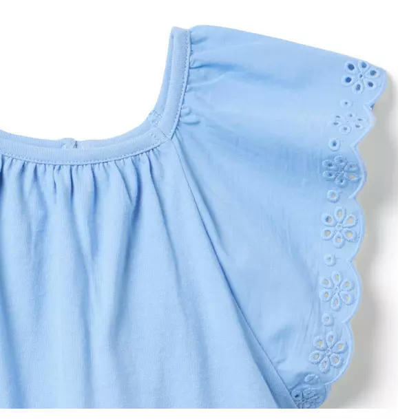 A top favorite that goes with just about everything. In soft cotton jersey with an A-line silhouette and floral eyelet trim at the sleeves.