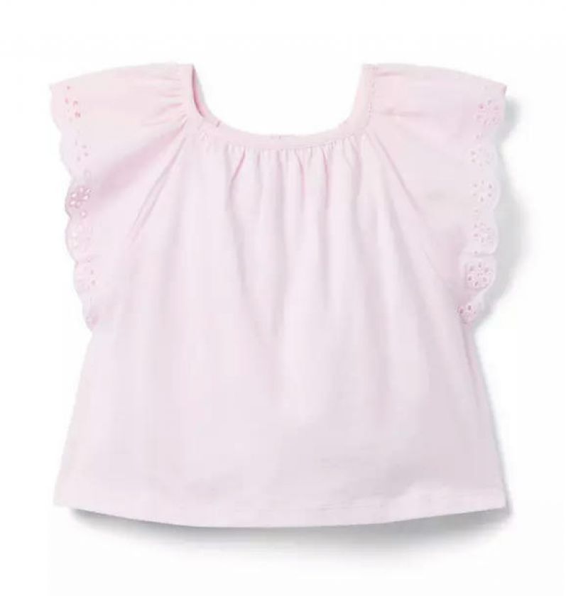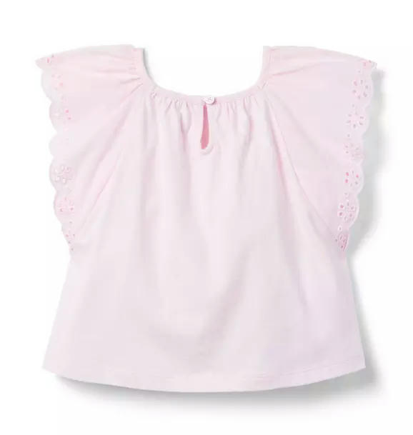 A top favorite that goes with just about everything. In soft cotton jersey with an A-line silhouette and floral eyelet trim at the sleeves.