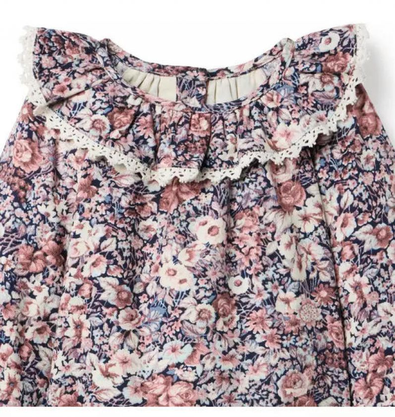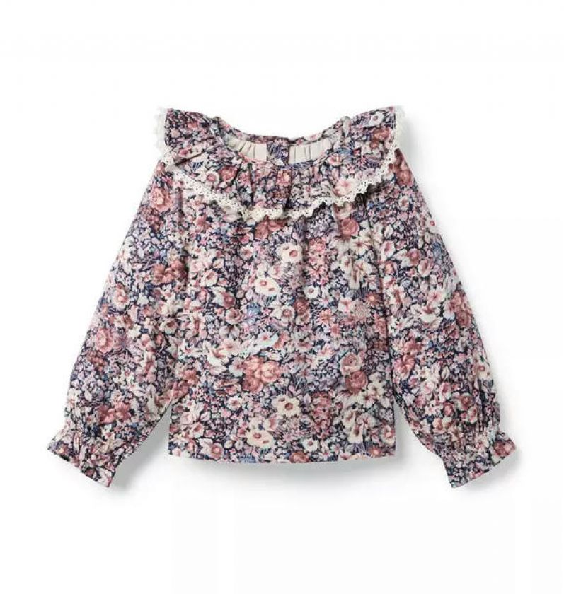Style blooms with our floral top in soft cotton twill. With ruffle details and crochet trim at the collar, it's a favorite to wear your way.
