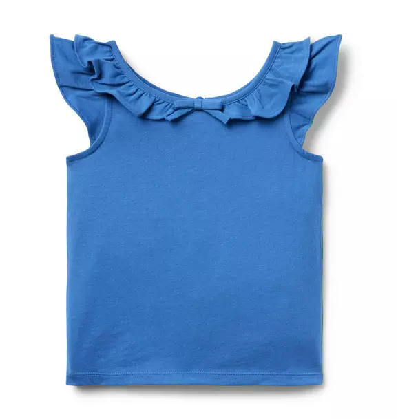 Our not-so-basic top. Designed in soft cotton jersey with flutter sleeves, a ruffle neck and a bow detail, it's ready to wear your way.
