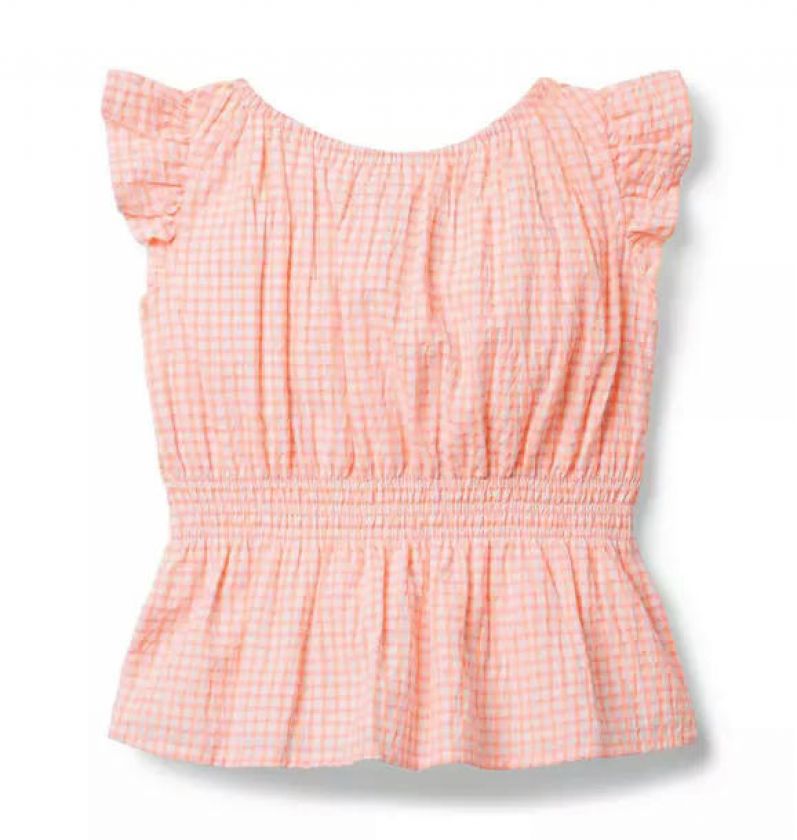 Get squared away for sunny days with our gingham top. Designed in breezy seersucker with a smocked waist, flutter sleeves and a bow detail too.
