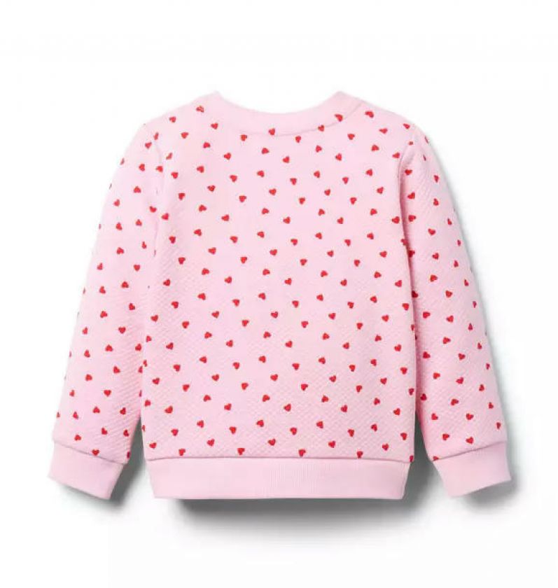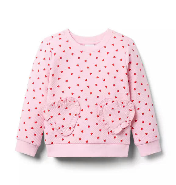 A cozy favorite that's all heart. Our sweatshirt in soft quilted jacquard features allover hearts, ruffle-trimmed heart pockets and ribbed details too.