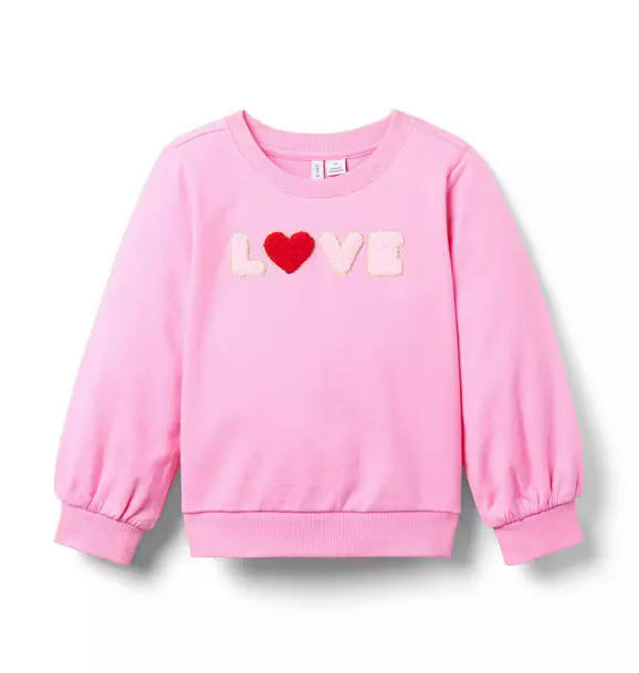 All you need is love—and our cozy sweatshirt. Designed in pure cotton French terry with a chenille Love graphic, metallic details and ribbed trim.