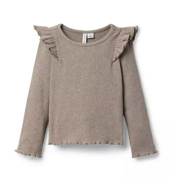 All the frills for this top favorite. In cozy brushed rib with ruffles at the shoulder, cuff and hem.