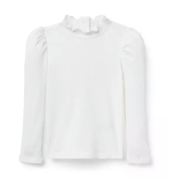 A staple for everyday style. Our soft ribbed top features puff sleeves and a ruffle detail at the neck. Wear it with everything.