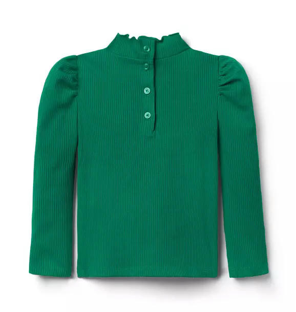 A staple for everyday style. Our soft ribbed top features puff sleeves and a ruffle detail at the neck. Wear it with everything.