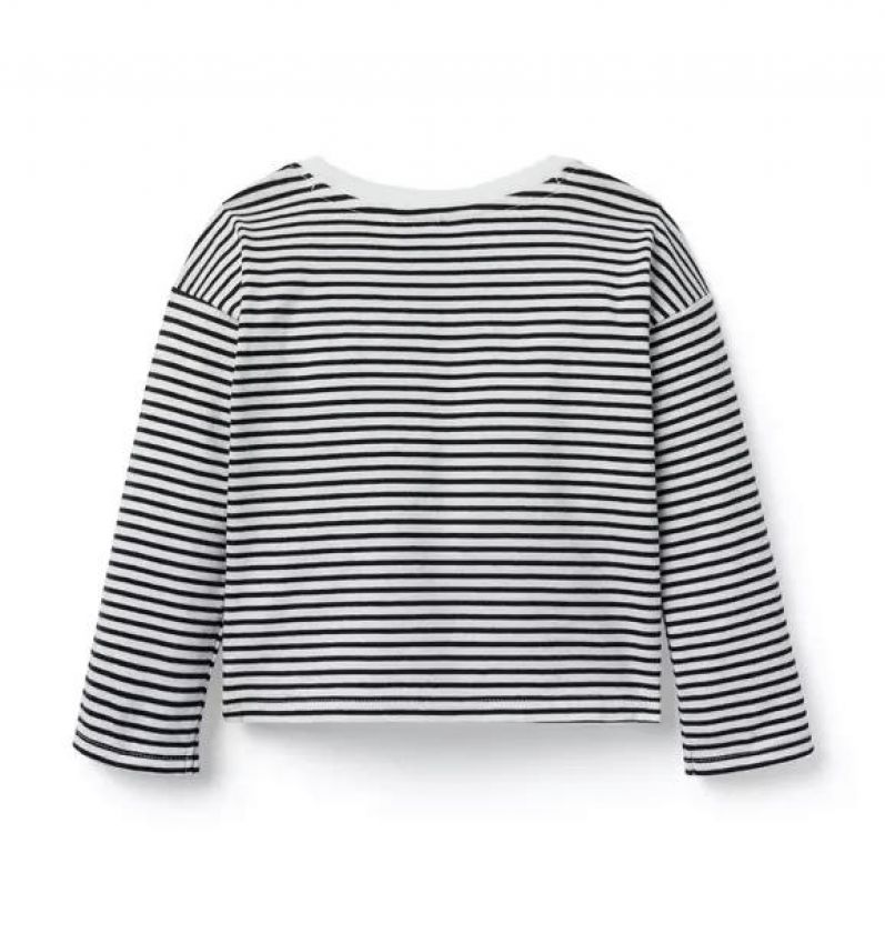 A standout in classic stripes. Designed with a drop shoulder and a bow detail to tie it all together.