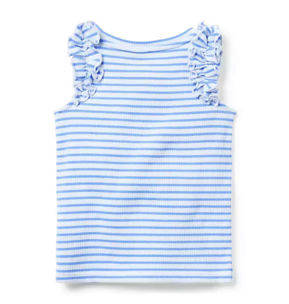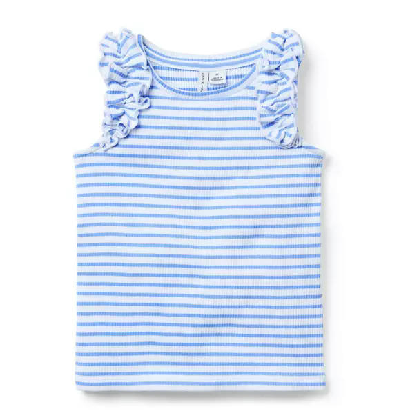 A wardrobe must-have designed in soft ribbed cotton. Featuring allover stripes and ruffle sleeves for extra frills.