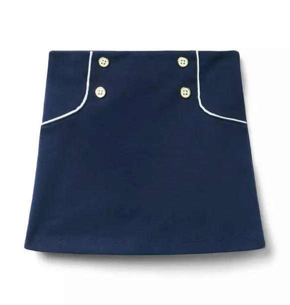 An instant wardrobe favorite, our ponte skirt features piped details and enamel buttons too. Wear it with everything.