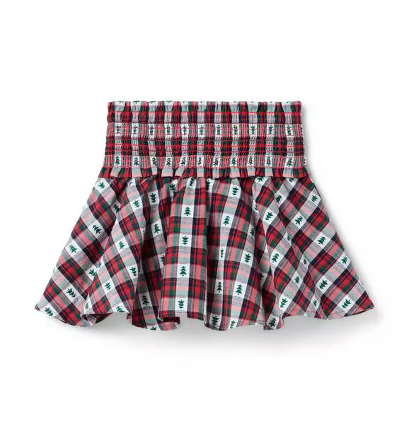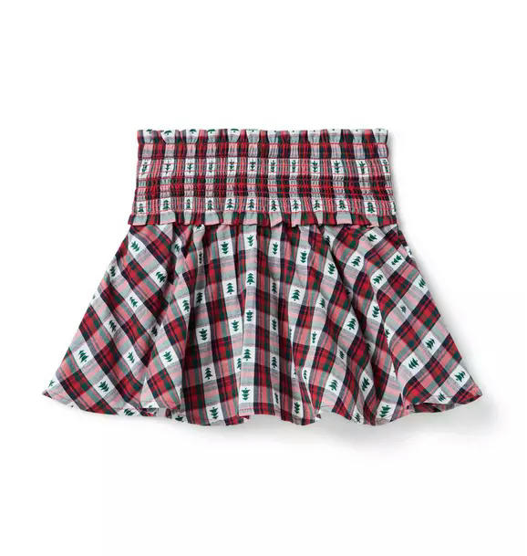 A skirt with all the trimmings, from the holiday-inspired tree tartan to the finely stitched smocked details and the crochet lace trim at the hem too.