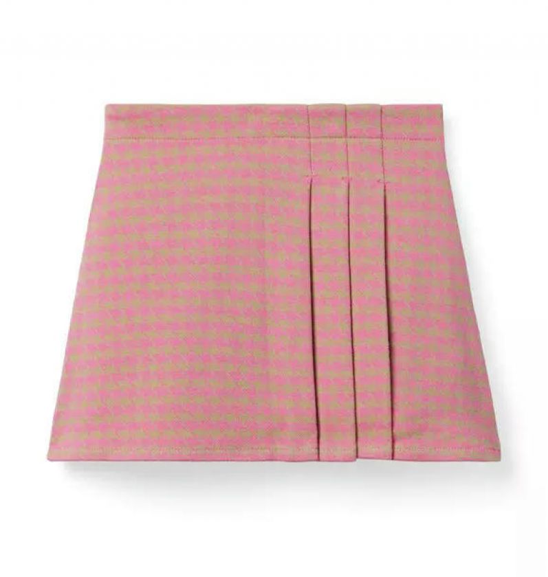 Classic houndstooth meets perfectly placed pleats. Our tailored skirt always stays ahead of the trends.