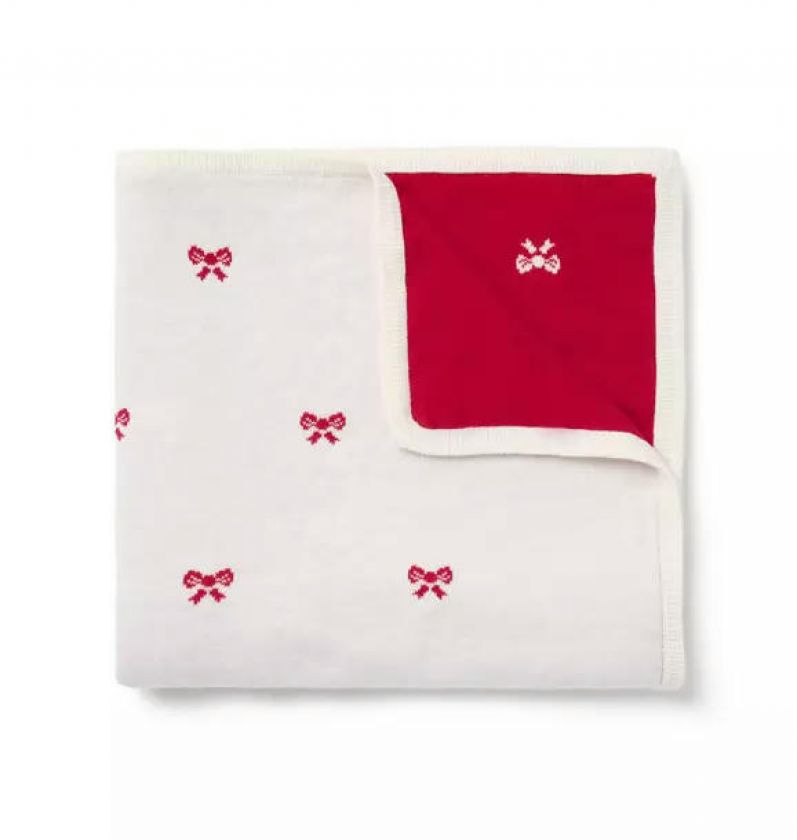 Wrapped in wonder, our soft and cozy intarsia-knit bow blanket is the perfect gift to give (and get).