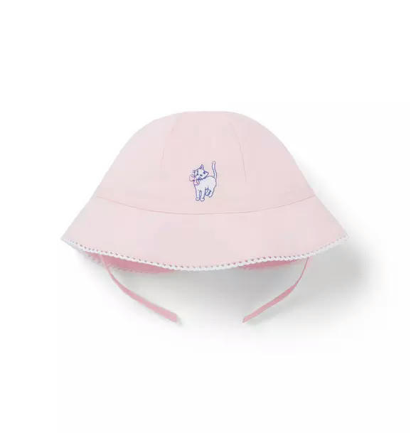 The purrfect addition to sunny first adventures. In pure cotton with an embroidered kitten detail, scalloped trim and a bow at the back.