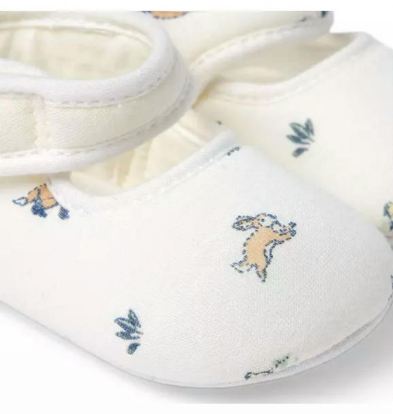 Our pure cotton bootie is perfect for first steps. In an allover woodland animal print with a touch-close strap.