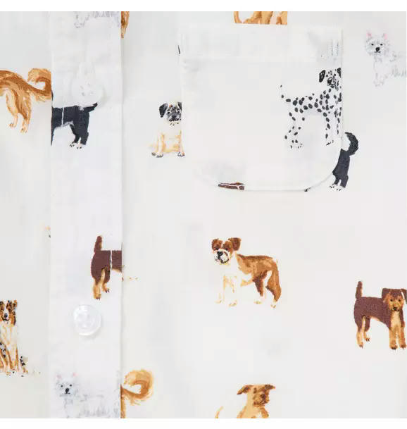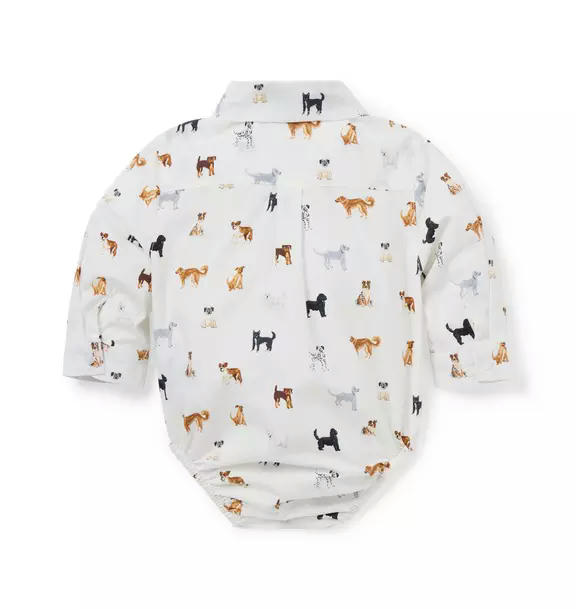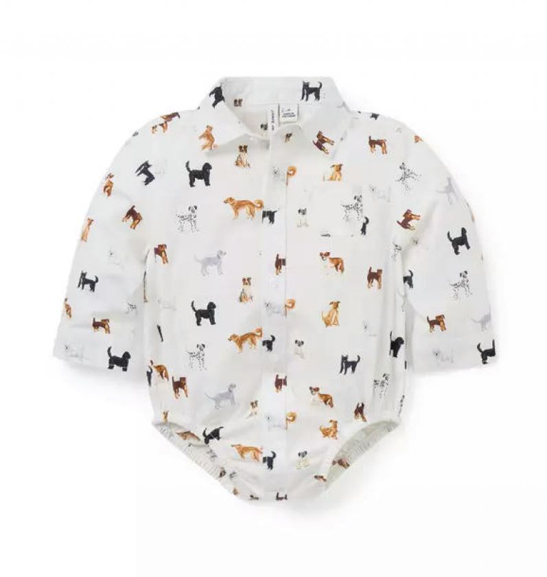 Every first look is best in show with our bodysuit in pure cotton poplin. With an allover dog friends print and tailored details, like roll cuffs and a little chest pocket.