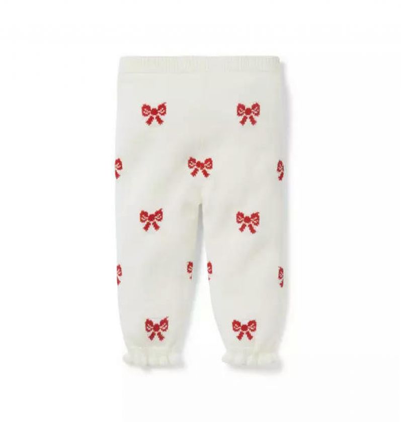 A cozy sweater pant for baby's first festive season. Made in pure, soft cotton with intarsia-knit bows, ribbed details and little ruffle cuffs.