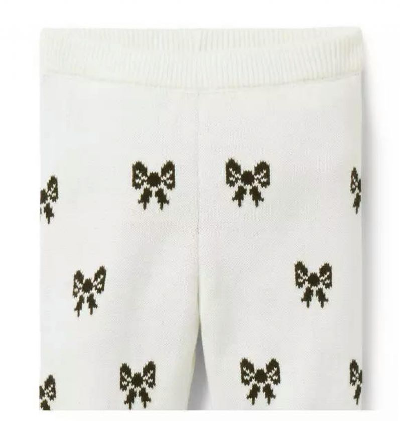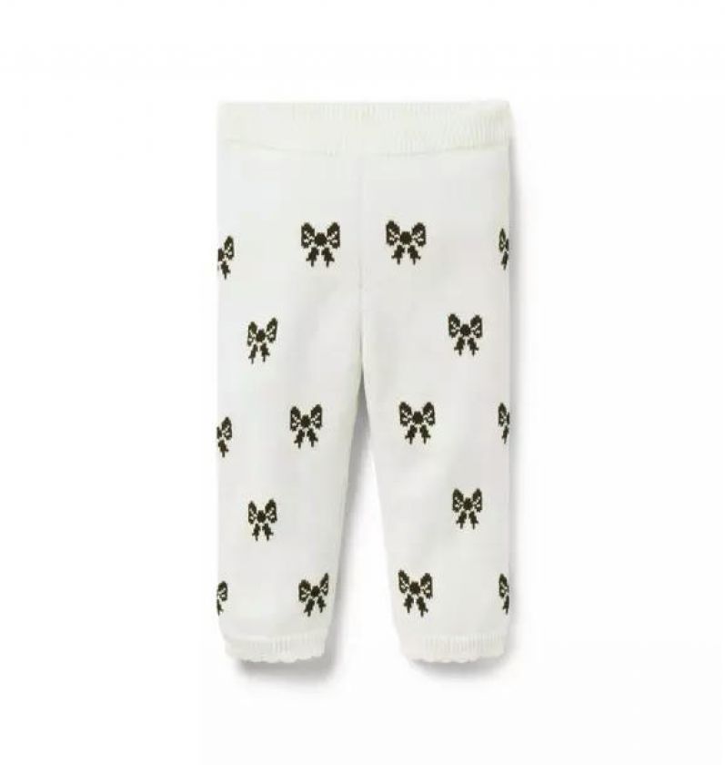 A cozy sweater pant for baby's first occasions, or just because. Made in pure, soft cotton with intarsia-knit bows, ribbed details and little ruffle cuffs.
