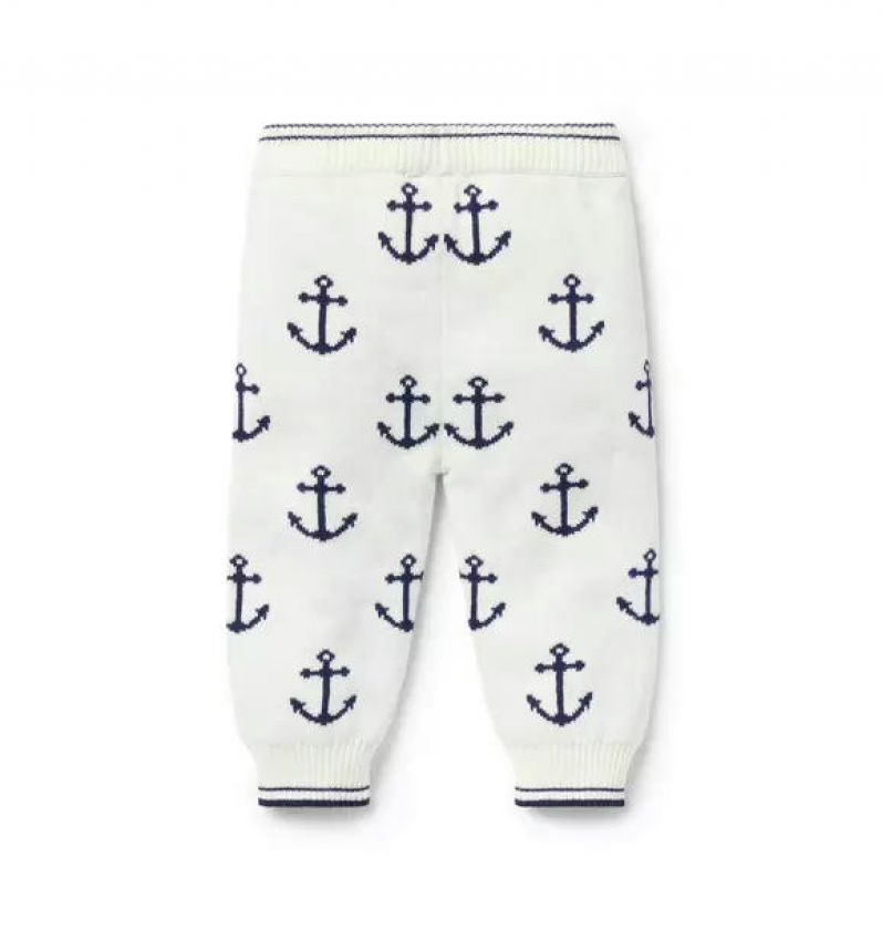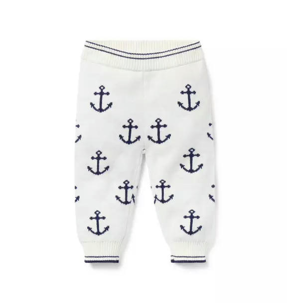 A cozy favorite gets a nautical twist. Our soft sweater pant is detailed with intarsia-knit anchors, striped details and ribbed trim.