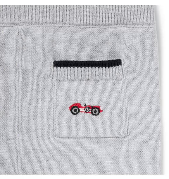 Our soft sweater pant is perfect for first adventures or cozy days at home. With a little embroidered race car at the back pocket, tipping stripes and ribbed details too.