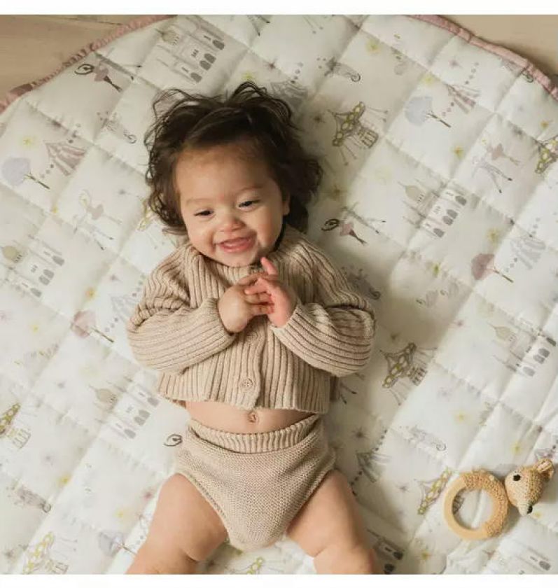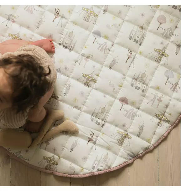 Nurture your child in a world of wonder with this playmat, thoughtfully designed for a cozy playtime oasis and celebrating those important developmental milestones. Crafted from the finest, soft materials and adorned with whimsical prints, it's perfect for tummy time, interactive play, and more.