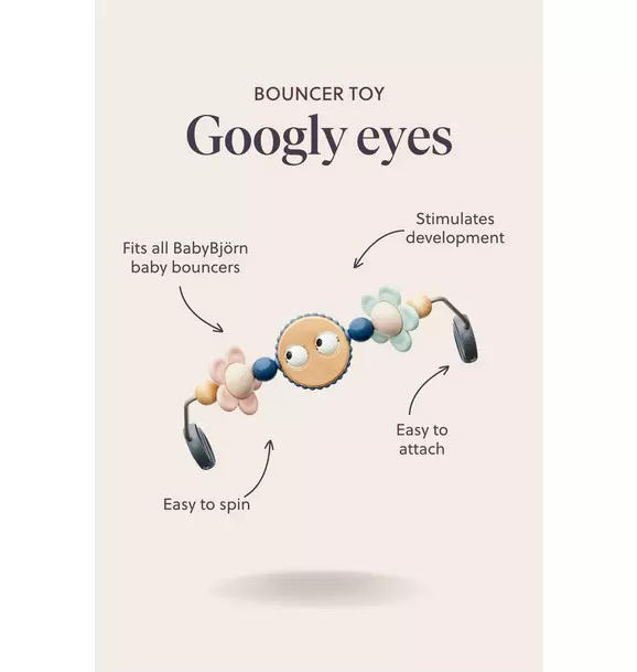 Our lightweight bouncers are easy to move around and take with you—they're a cozy place for your baby to play close by you while you have your hands free for a while. The natural rocking of a bouncer usually has a comforting effect on a very young baby. A toy makes the bouncer even more fun and also stimulates your baby’s balance and motor skills.