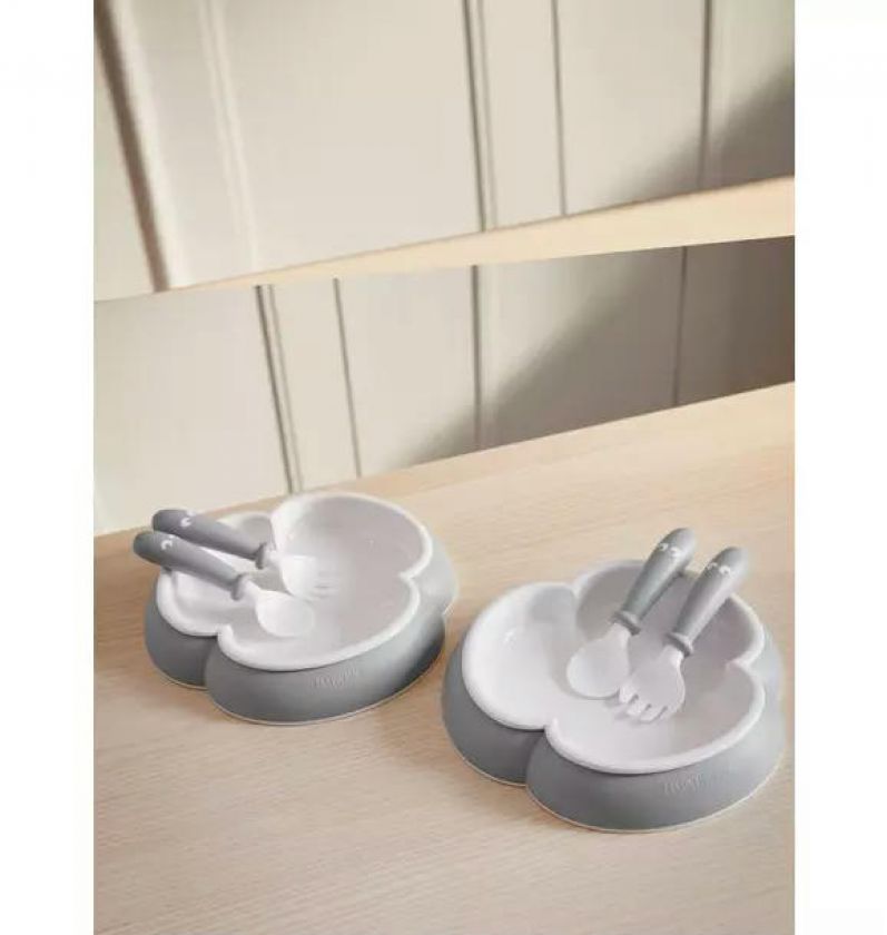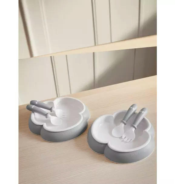 Baby Plate, Spoon and Fork, 2 Sets, Gray