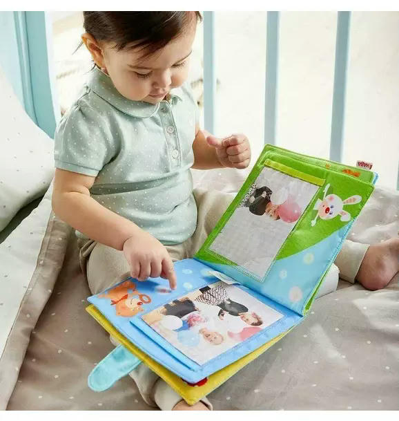 Playmates Soft Fabric Photo Album: Add photos of family, pets or whatever you like to this adorable album for your baby to explore. Sliding pockets make it easy to take photos in or out, so you can change the contents as often as you wish.