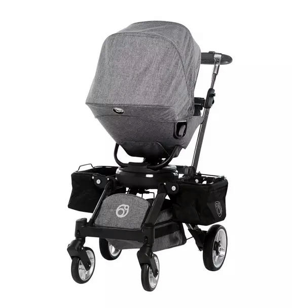 Panniers effortlessly clamp on sides of Orbit Baby SmartHub™ Stroller Base without straps or buckles. When not in use, Panniers fold and collapse, even when attached to stroller.