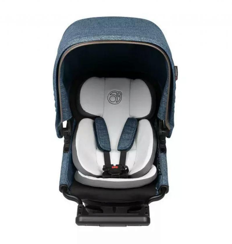 Modern, modular stroller seat designed to rotate so babies can see the world around them.