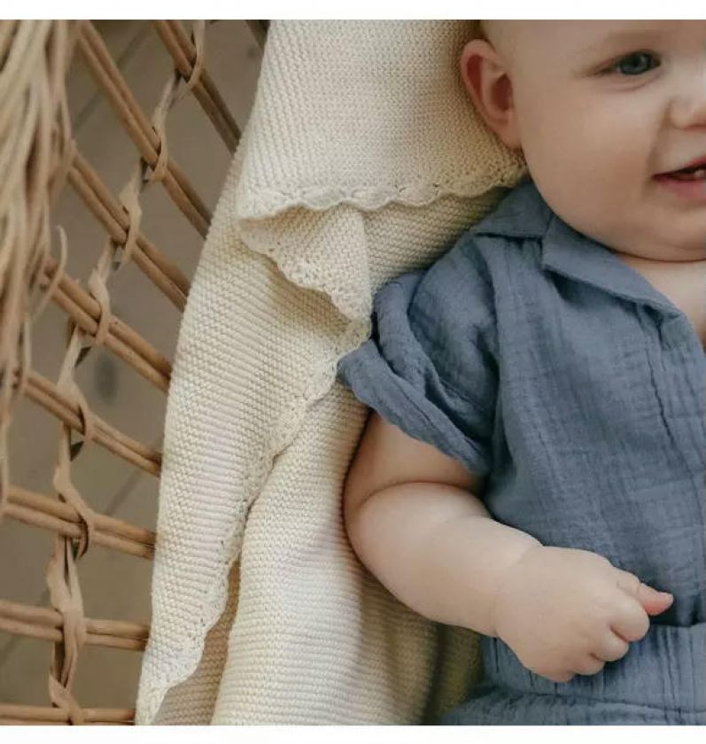 Here is the perfect gift! An everyday staple, this perfectly sized knit blanket is made for mornings in the nursery, stroller walks, and plenty of cozy moments. Knit from 100% Cotton with a cozy handstitched scalloped pattern. We love cotton because it is sustainable, kind to the skin, regulates body temperature, is highly absorbent, luxurious and durable.