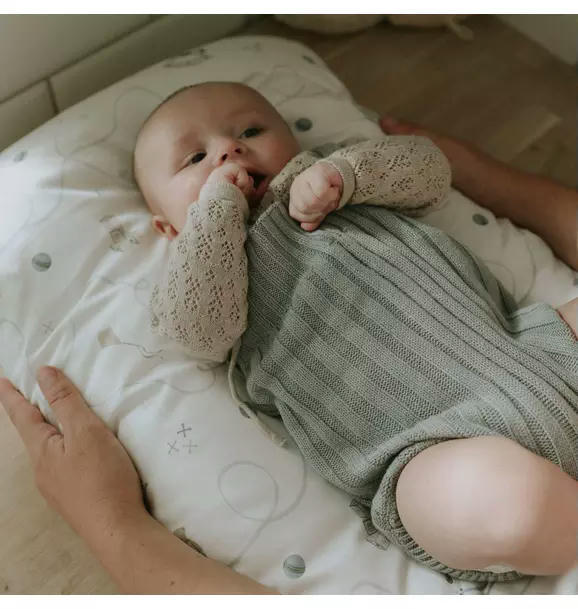 To create this extra soft diaper changing pad cover, we used Cotton Sateen—a weave that offers a silkier, softer feel compared to regular cotton. It's lofty, breathable, and keeps your baby comfortable during every diaper change. Additionally, it's OEKO-TEX certified, ensuring it's woven from the purest materials and free of harmful toxins. It also pairs nicely with a matching crib sheet, completing the cozy and cohesive look of your nursery.