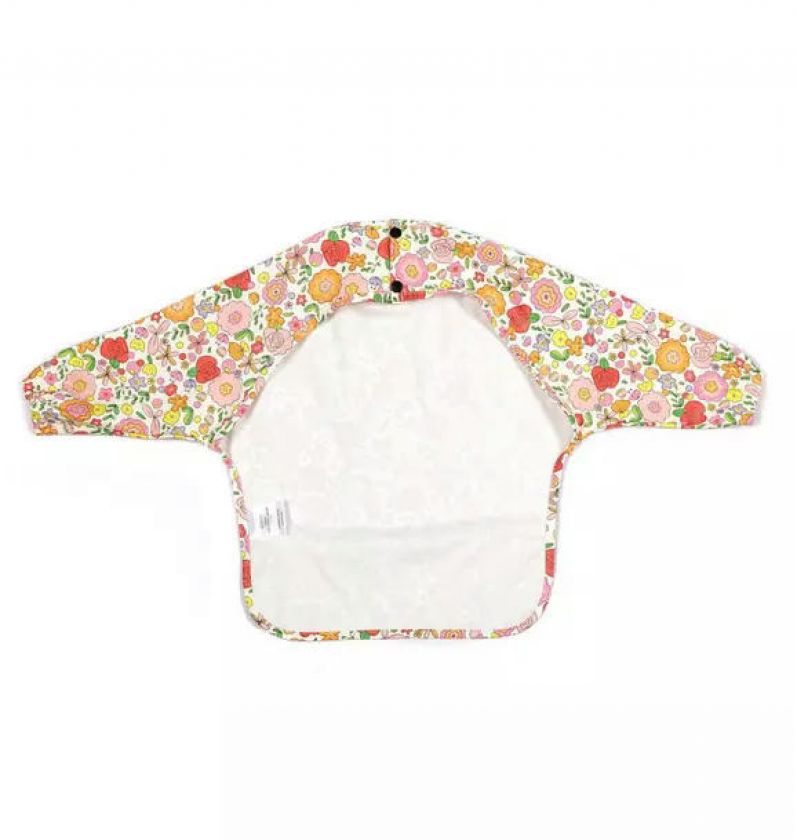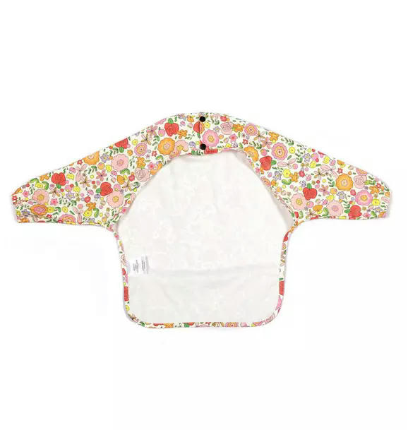 Our bib has been crafted to address the needs of the messiest eaters! This colorful bib with long sleeves provides more coverage than traditional bibs. The elastics prevent food spillage into the sleeves, while a pocket catches all those inevitable crumbs, sparing your floor from the aftermath. Elevate your child's dining and creative experiences with our joyful bibs!