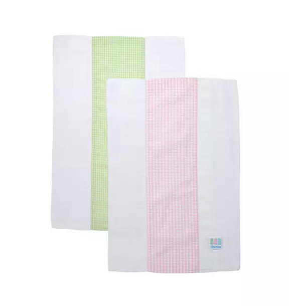 Fun, Happy Design: Each absorbent burp cloth features a sweet fabric panel down the center | Ideal for quick clean-ups during feedings or burping | Gift-Ready: Each set is beautifully rolled and tied with a grosgrain ribbon—no extra wrapping needed! | 100% cotton | Wash colors separately, cold water, no bleach, dry low heat