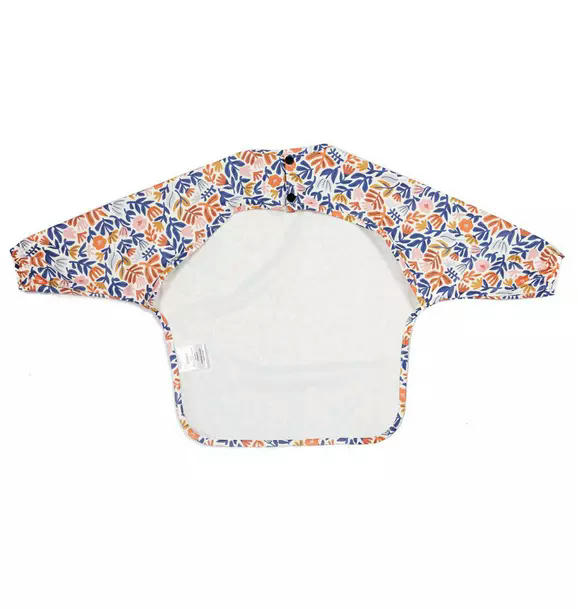 Our bib has been crafted to address the needs of the messiest eaters! This colorful bib with long sleeves provides more coverage than traditional bibs. The elastics prevent food spillage into the sleeves, while a pocket catches all those inevitable crumbs, sparing your floor from the aftermath. Elevate your child's dining and creative experiences with our joyful bibs!
