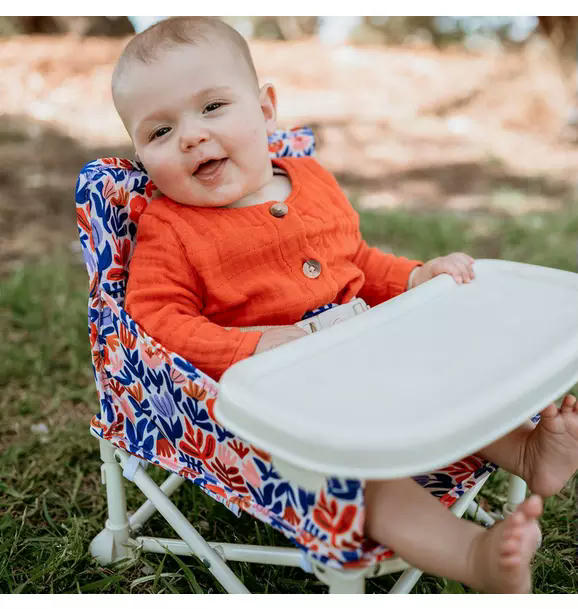 Got a little one who won't sit still? Maybe it's because... they're sitting on the wrong seat! Introducing the ultimate, most comfortable baby chair now available in the US: the IZIMINI portable booster seat. With over 1,500 5-stars reviews, our iconic baby chair is loved by 60,000 families in Australia and the US. Whether you're strolling along the boardwalk in California, exploring Central Park in New York, or simply relaxing in your own backyard, you won't find a chair for your little one that's as stylish, cozy, and practical as the IZIMINI Baby Chair. This adorable seat isn't limited to the beach - it's perfect for picnics, camping trips, family gatherings, or whenever you don't have a high chair as it can be used as a booster seat on a dining chair thanks to the straps included in the matching carry bag. Showcases a stunning floral design by acclaimed Sydney-based artist Sara Riley.