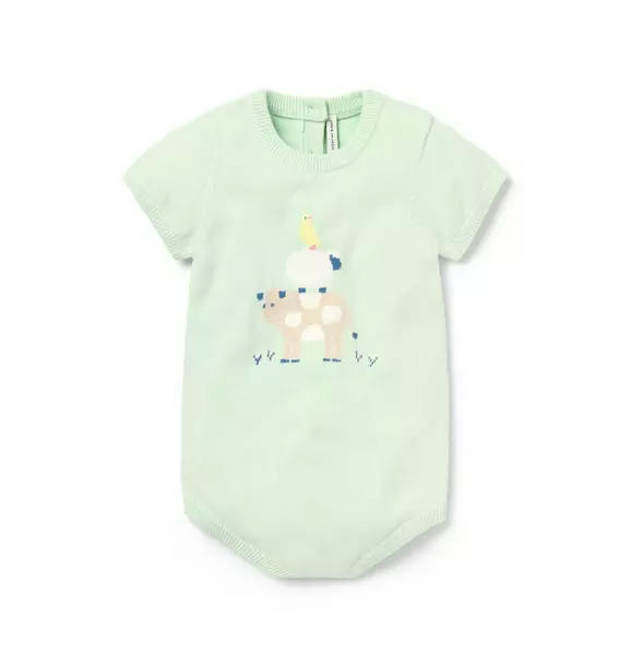 A little romper we love a lot. Featuring baby's favorite farm friends in a soft and cozy knit. It's ready for first adventures.