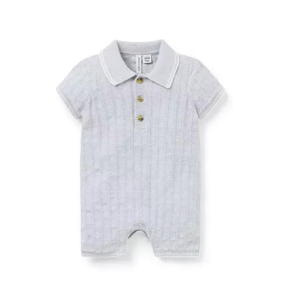 A one-and-done look for every first. Designed in pure cotton, our textured knit romper features tipping at the collar and little back pockets too.