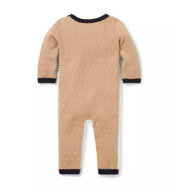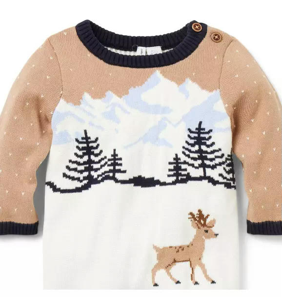 For cozy first moments, our soft sweater one-piece is the one to love. Designed with contrast ribbed details and an intarsia-knit deer scene.
