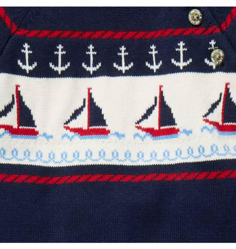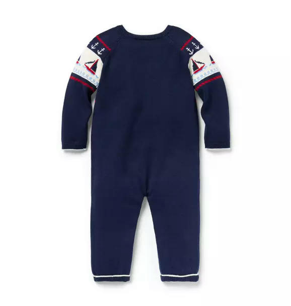 Seas the day with our cozy, nautical-inspired sweater one-piece. Featuring intarsia-knit sailboats and anchors.