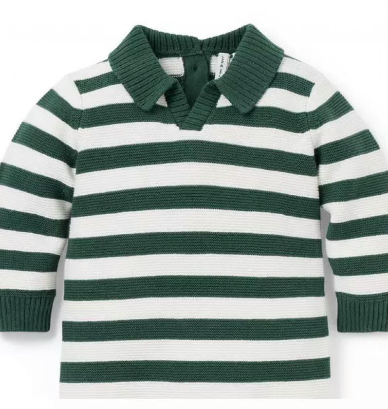 Sporty style for first moments. Our cozy knit bodysuit in soft, pure cotton features allover stripes and a little rugby collar.