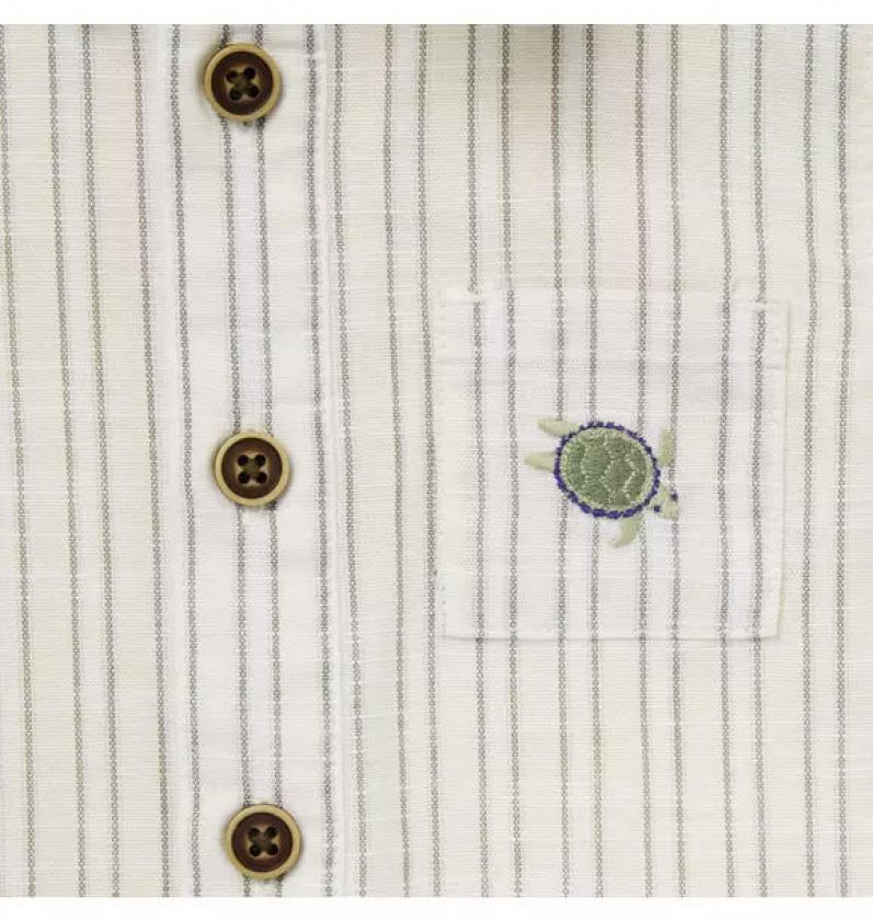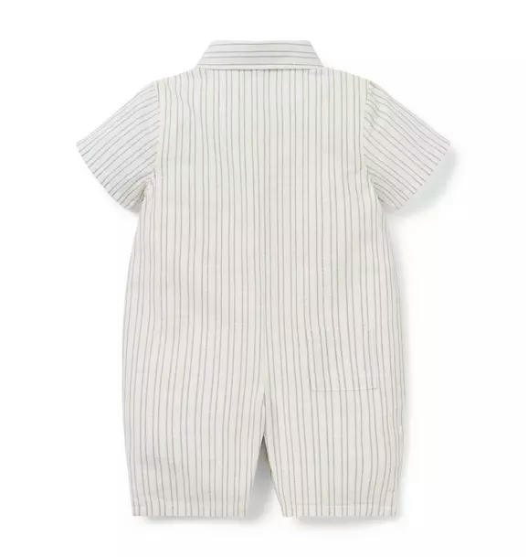 Our romper in soft cotton slub is just right for baby's first adventures. With allover stripes, an embroidered sea turtle detail at the chest pocket and a little back pocket too.