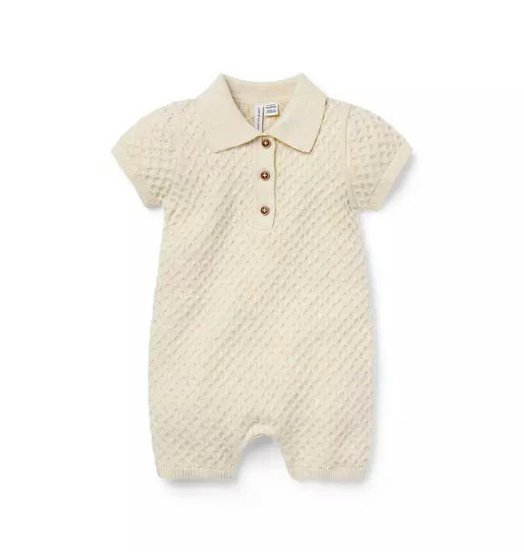 For first moments, our romper is the one to love. Designed in a soft textured cable knit with little back pocket details.