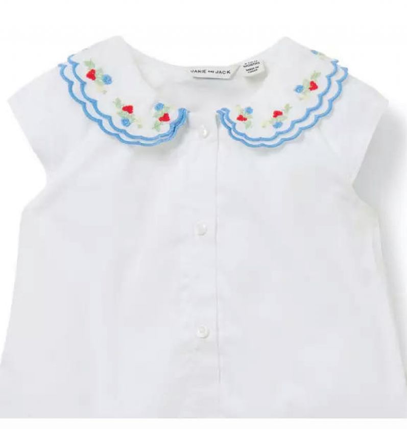 For special first moments or just because, our classic set in pure, soft cotton is the one to love. With little embroidered florals and a scalloped collar too.
