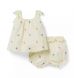 Get set for sunny first moments. Our matching set features an allover giraffe print, shoulder bows and ruffle details too.