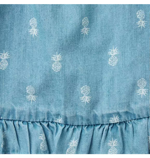 Our pineapple print set makes matching moments extra sweet. In pure cotton chambray with ruffles, flutter sleeves and a bow, of course.