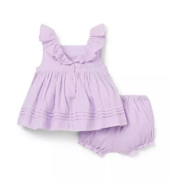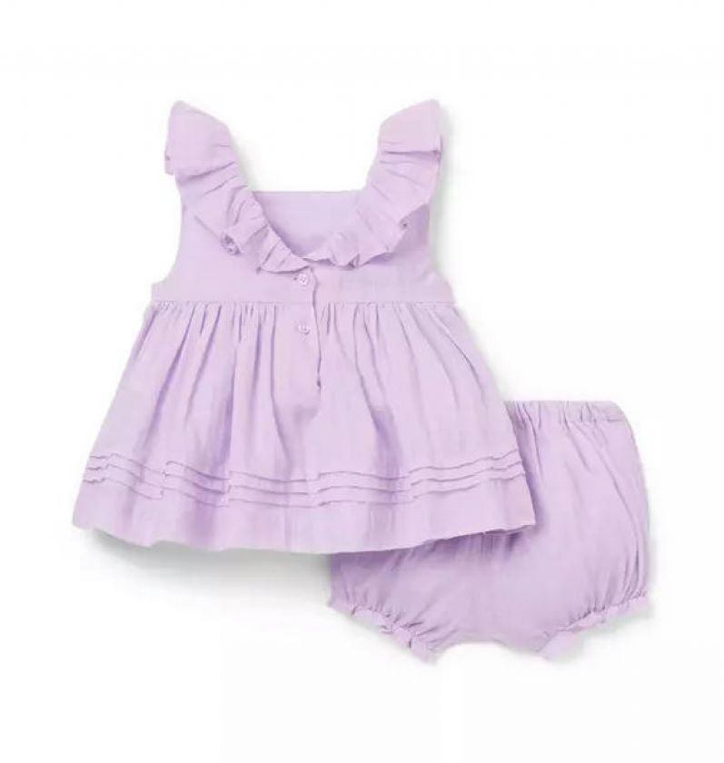 The perfect match for first moments. Designed in pure cotton with flutter sleeves, pintuck details and ruffles too.